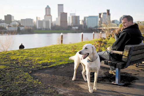 As dusk settles, leash up for a riverside stroll along the Willamette where city lights twinkle on the water and off-leash green spaces invite a game of fetch.