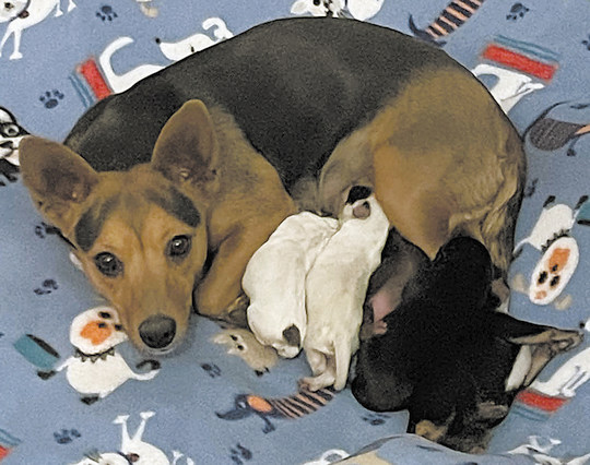 We knew ahead of time that one dog, Reba, was coming with a litter of puppies, but it wasn’t until the day they were due to arrive in Prescott that we discovered another dog in the group, Tulie, was not only pregnant but had given birth that very morning.